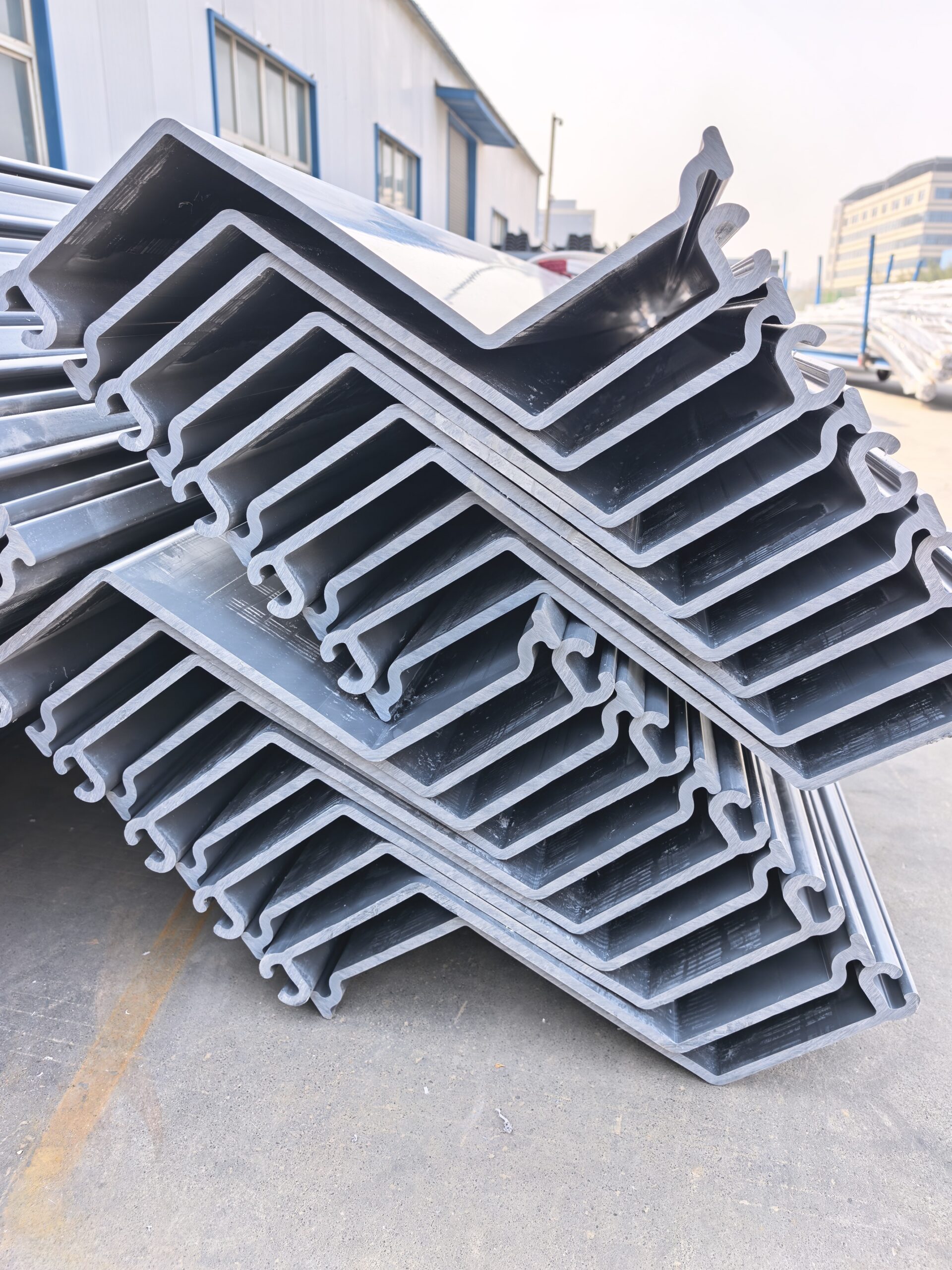 Thanks to its high strength, high toughness, eco-friendliness, durability, and construction efficiency, the Z402 plastic-steel sheet pile is widely used in applications such as hydraulic slope protection, river channel management, excavation shoring, embankment reinforcement, and flood control. It reliably replaces traditional steel sheet piles and concrete components, enhances the overall quality of projects, and provides a durable and stable protection solution for various water conservancy and shoring projects